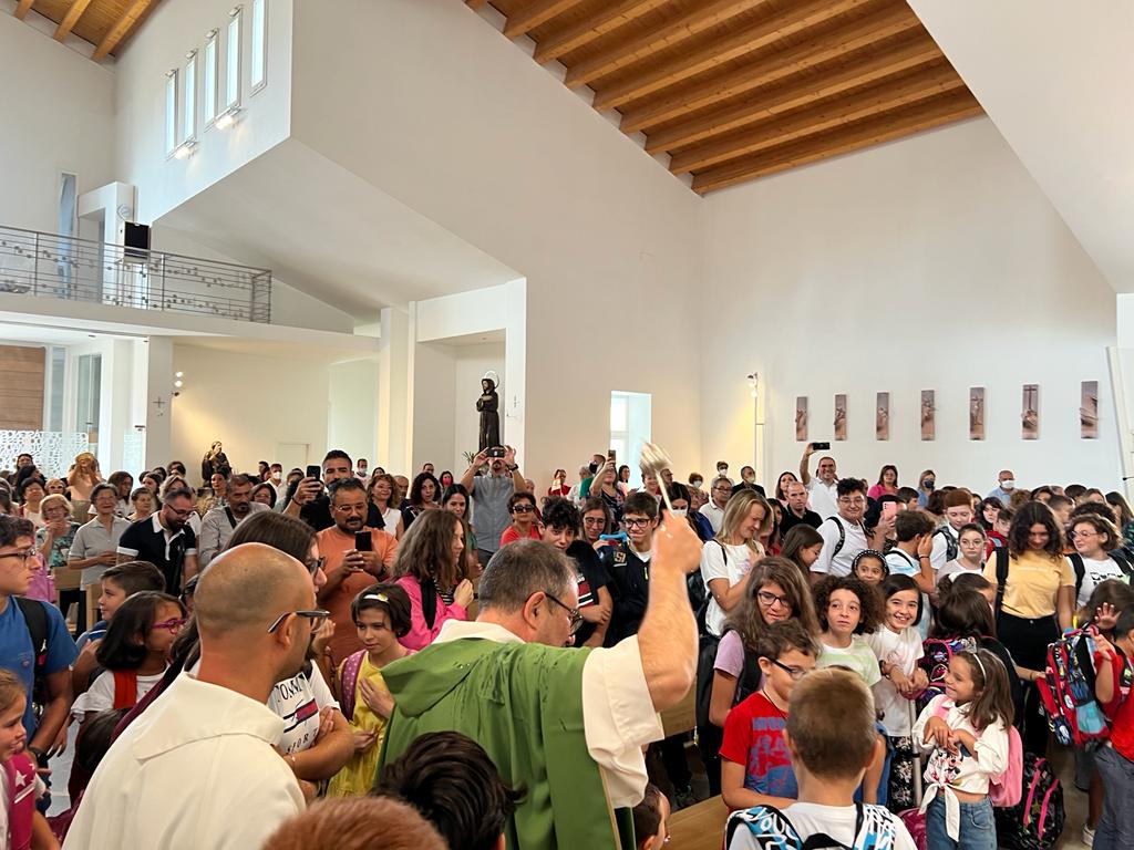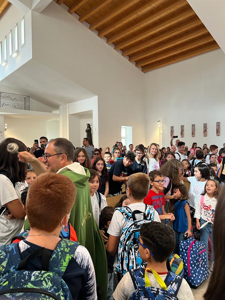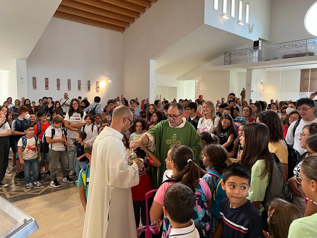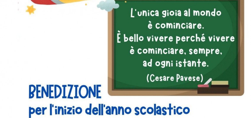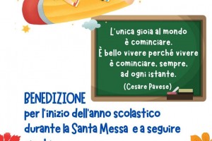 Con il suono di una campanella, è iniziatoil nuovo anno scolastico. Per il nono anno consecutivo durante le celebrazioni della domenica condivideremo il momento della benedizione dello zainetto con tutti i ragazzi, gli insegnanti e tutti coloro che operano nella scuola. Questo momento comunitario, che è un gesto di preghiera per ricordare che il Signore ci accompagna sempre, ovunque siamo, in tutti i luoghi e circostanze della vita, lo vivremo insieme Domenica 28 settembre alla messa delle 10.00 per tutti i ragazzi della catechesi e alle 11.30 e 19.00. Vi ricordo, come ogni anno, di mettere nello zainetto un gesto di carità da condividere con i poveri. Quest’anno chiediamo di offrire il latte,pelati oppure olio, alimenti per la nostra dispensa parrocchiale. Sarà presente a messa per la benedizione degli studenti la vice dirigente dell' Istituto Comprensivo Statale Giuseppe Mazzini di Erice la Dott.ssa Rossella Ruggirello.